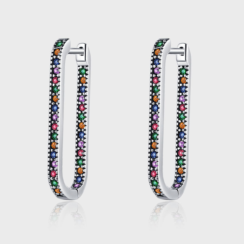 Product: Wholesale 925 Sterling Silver Rainbow Zirconia U Shape Hoop Earrings 6020002.