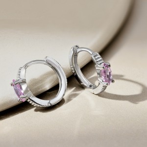 Product: Wholesale 925 Sterling Silver Vintage Pink Marquise Zirconia Hoop Earrings 60200181.