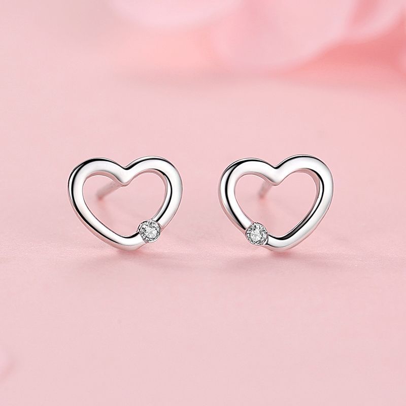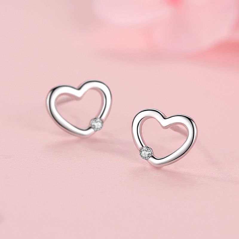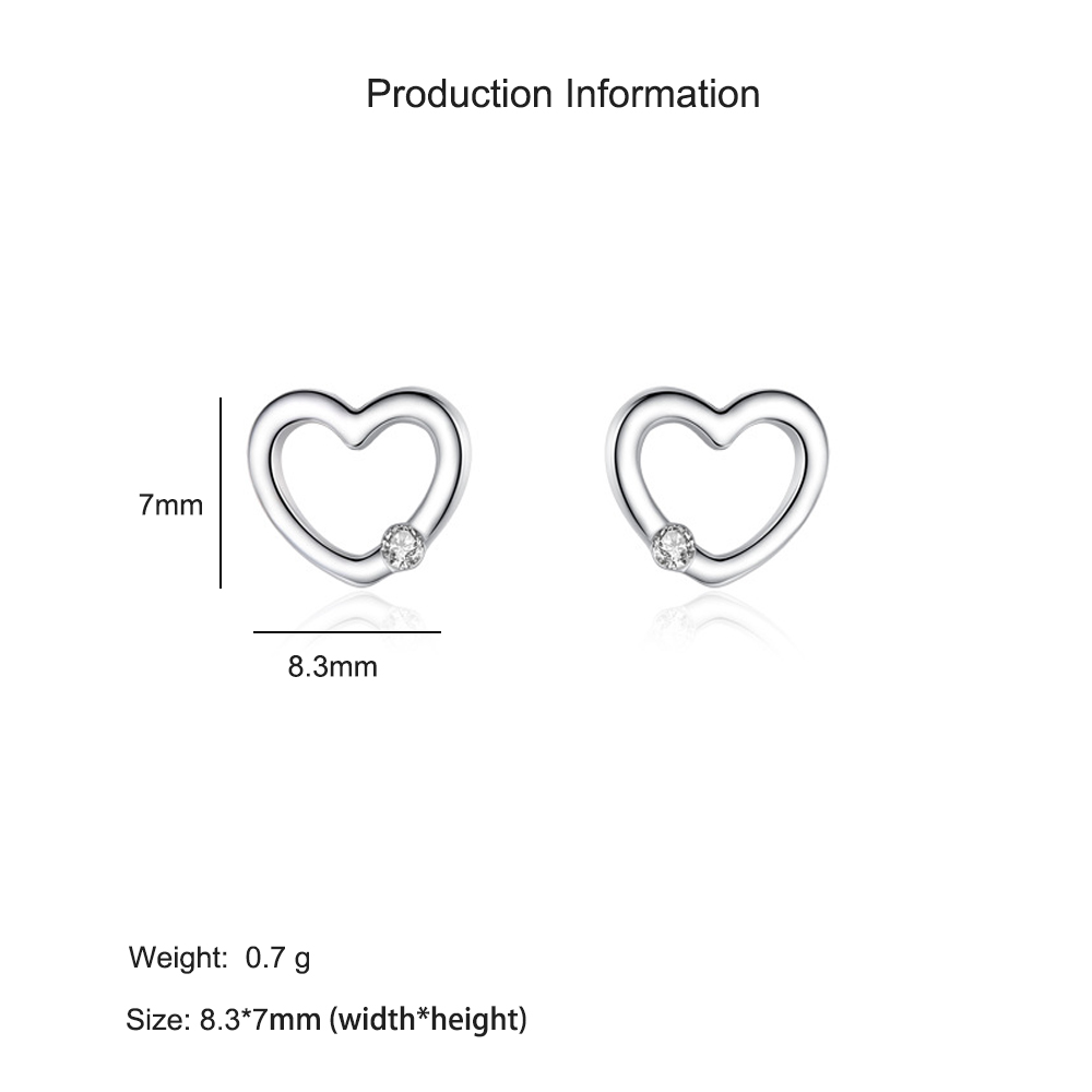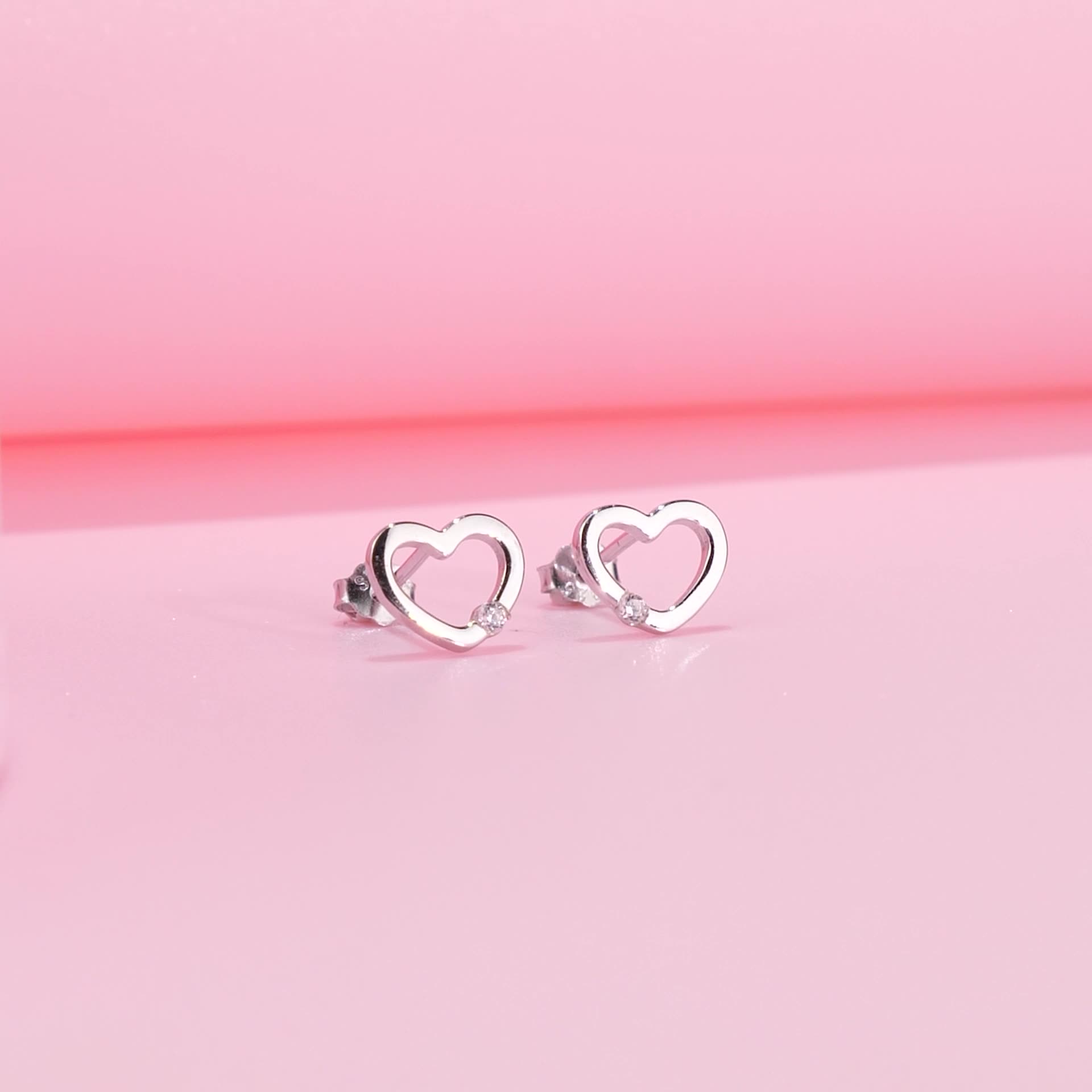 Sweet and elegant, these 925 sterling silver open heart stud earrings capture the beauty of love with a minimalist hollow-heart design accented by a single sparkling cubic zirconia. Lightweight, polished, and timeless, they add a delicate shine to any outfit — perfect for everyday wear or as a meaningful gift. Crafted from genuine 925 sterling silver, they are hypoallergenic, comfortable, and made to last with a high-polish finish.